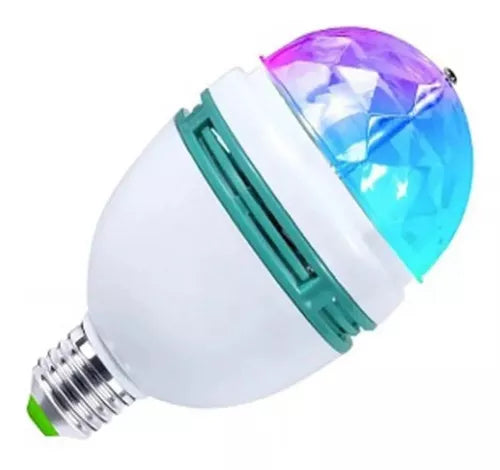 La Ampolleta Disco LED Giratoria de Fiesta es una excelente opción para quienes buscan crear un ambiente animado y festivo en interiores. Aquí tienes un resumen detallado de sus características y especificaciones: