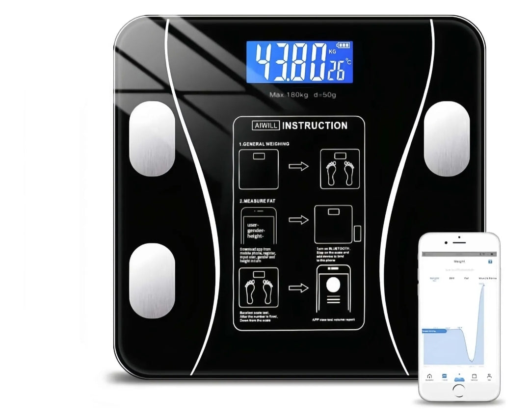 Con una capacidad máxima de 180 kg, esta báscula digital permite medir no solo el peso, sino también el porcentaje de grasa corporal, brindando una visión completa de tu estado físico. Su conectividad Bluetooth te permite sincronizar los datos con tu smartphone, facilitando el seguimiento de tu progreso a lo largo del tiempo.