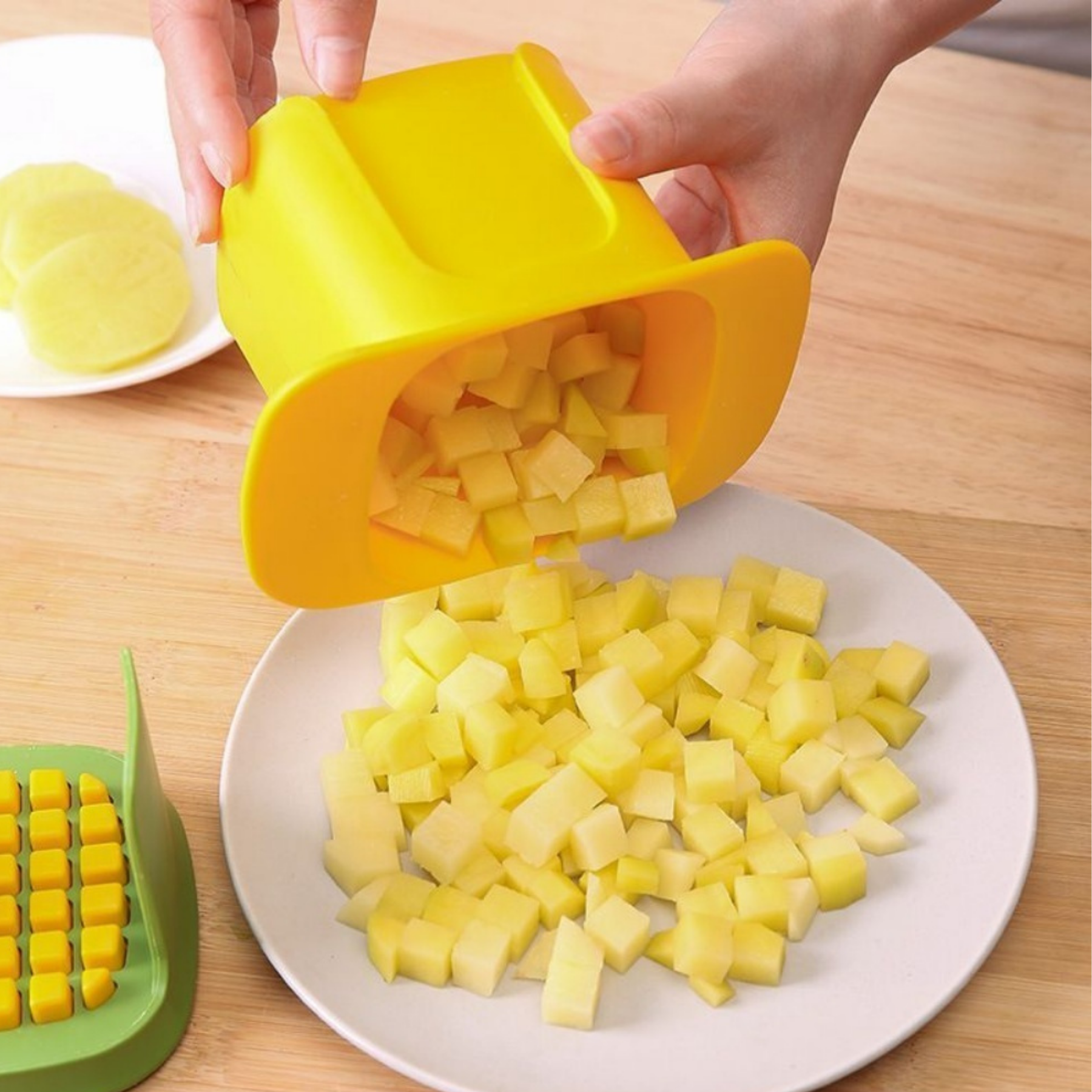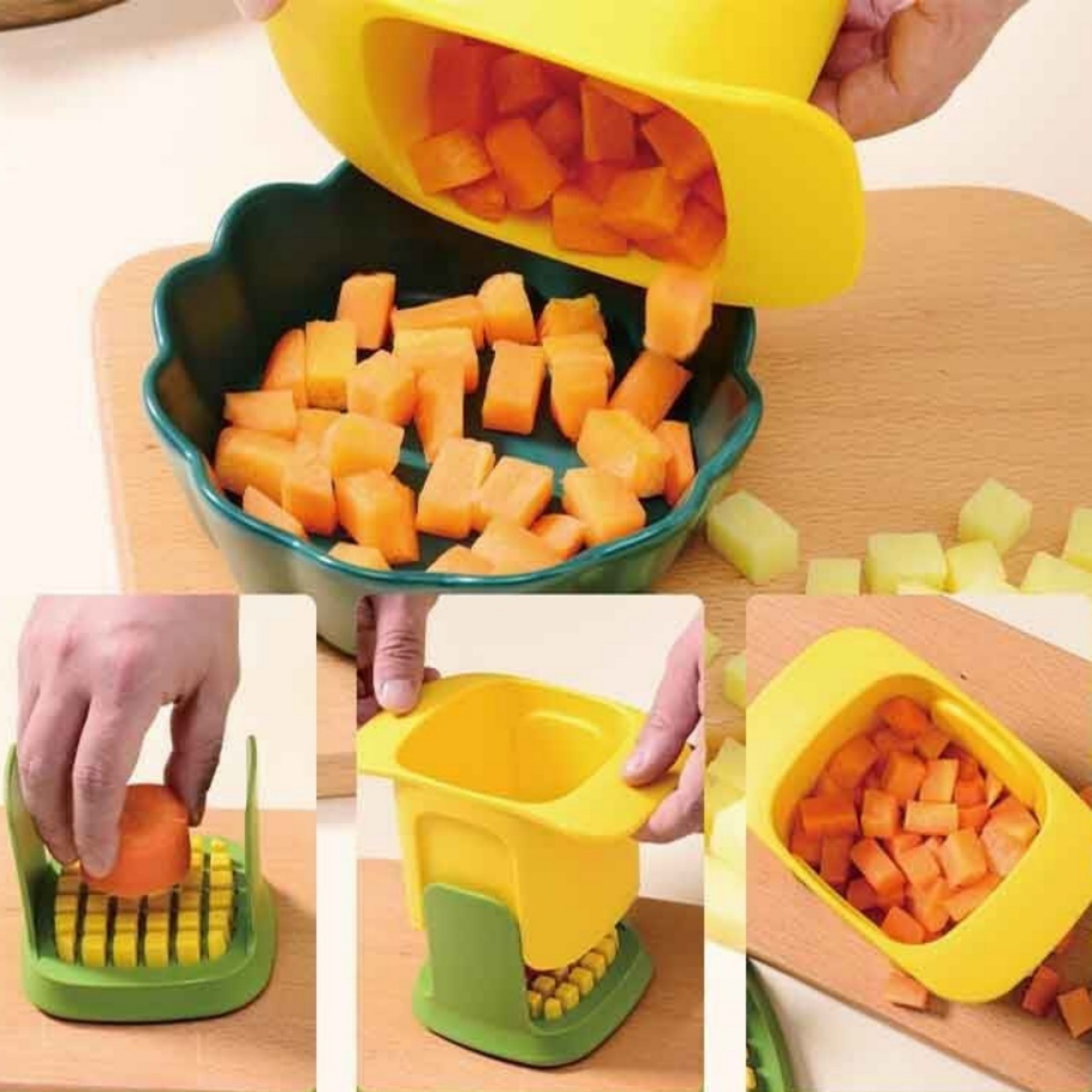 Picadora de Verduras Multifuncional – Cortador en Cubitos y Rebanador de Papas y Verduras (15×10×10 cm)